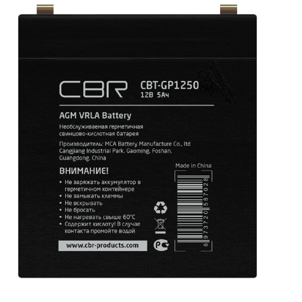 CBR Аккумуляторная VRLA батарея CBT-GP1250-F2 (12В 5Ач), клеммы F2