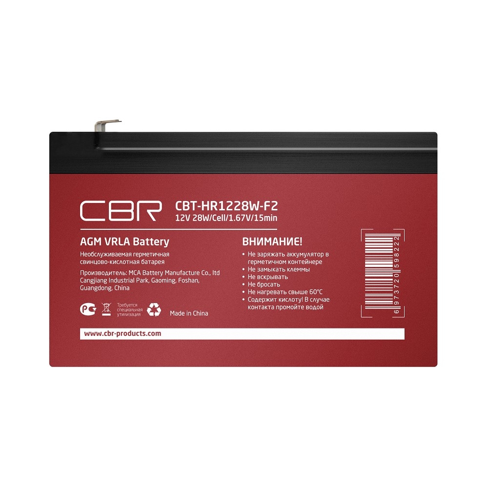 CBR Аккумуляторная VRLA батарея CBT-HR1228W-F2 (12В 6,6Ач), клеммы F2