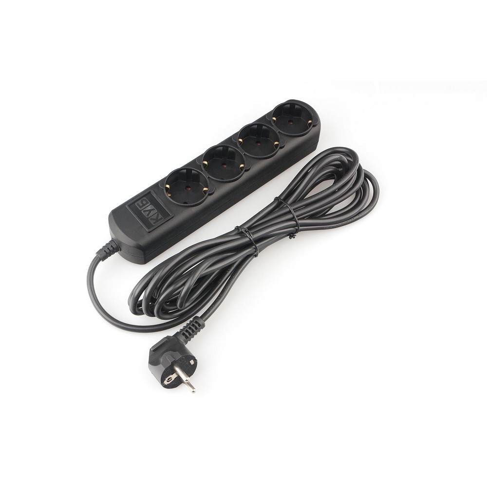 PowerCube Удлинитель (PC-2B-5M) 5.0м, 4 розетки, 16А, без выключателя, черный графит