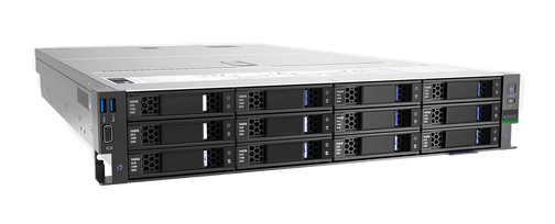 - Гибкость хранения данных: 12 универсальных слотов для дисков 2.5" или 3.5" форматов позволяют создавать гибридные массивы хранения (SSD+HDD) под конкретные задачи производительности и емкости.