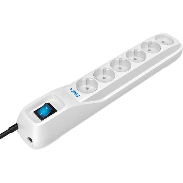 - Увеличенное количество розеток: Шесть точек подключения позволяют запитать комплекс из базового рабочего места (системный блок, монитор, принтер, аудиоколонки, лампа, зарядное устройство).