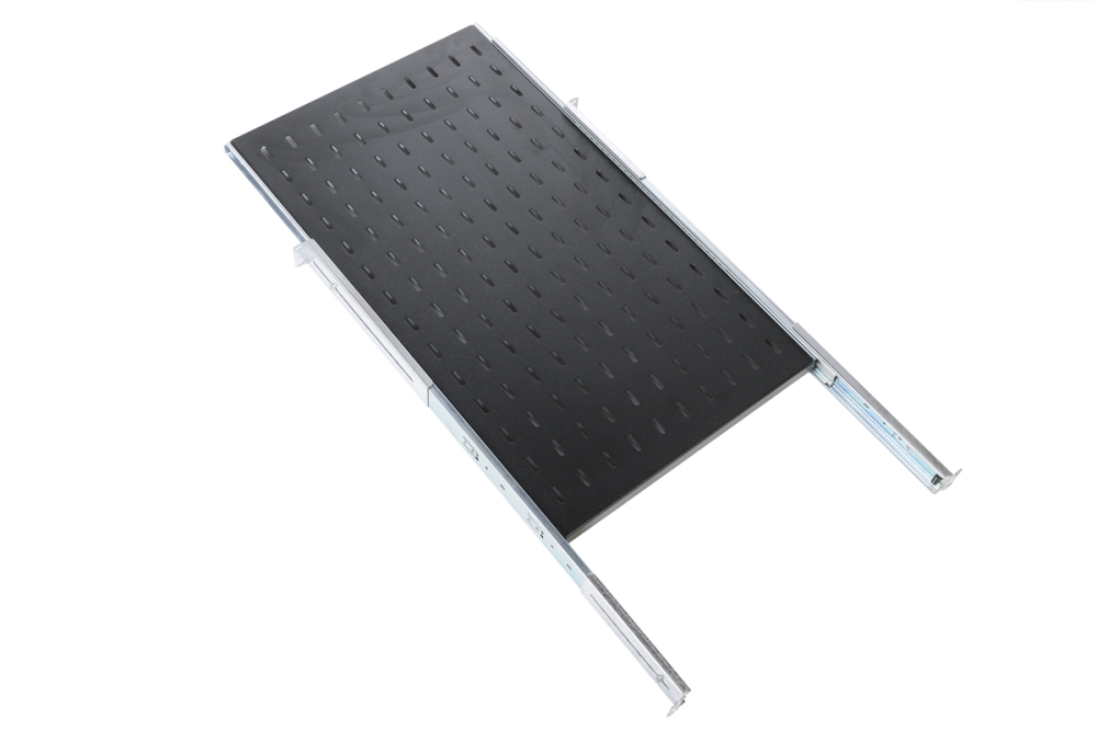 - Выдвижная конструкция с телескопическими направляющими: Обеспечивает полный доступ к оборудованию для обслуживания без необходимости его демонтажа из шкафа.