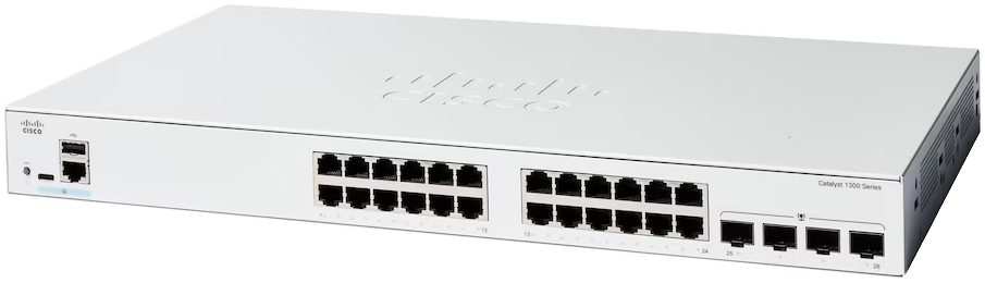 Коммутатор CISCO Catalyst 1300 24x 10/100/1000 Ethernet RJ-45 ports, 4x 1G SFP uplinks, Fanless, C1300-24T-4G