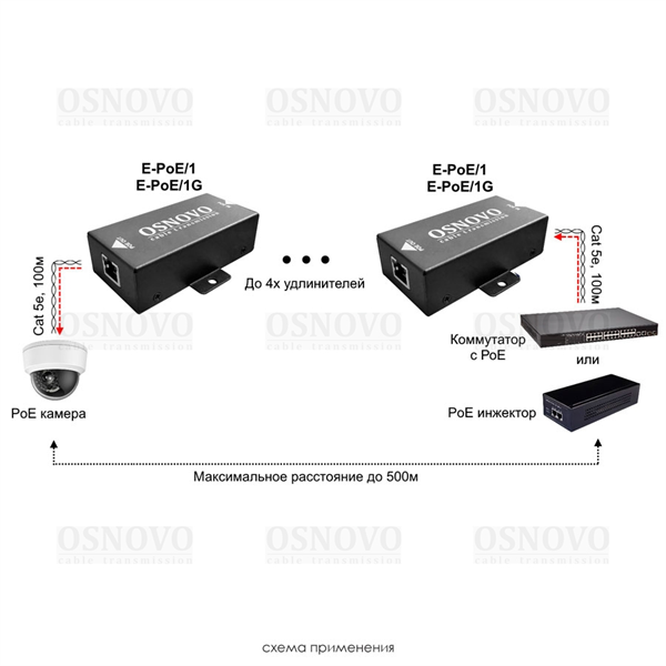 PoE удлинитель 10M/100M Fast Ethernet до 500м. Увеличение расстояния передачи данных + питание на 100м. При каскадном подключении - 2 x E-Poe/1: до 300м (до 12W), 3 x E-Poe/1: до 400м (до 6W), 4 x E-Poe/1: до 500м (До 4W). Соответствует стандартам PoE IEEE 802.3af/at. Автоматическое определение PoE устройств. Порты: вх.- FE (10/100 Base-T), вых.- FE (10/100 Base-T). Не требует дополнительного питания. Размеры (ШхВхГ): 94x48x28 мм. Металлический корпус. Рабочая температура: -10...+55 гр. С |