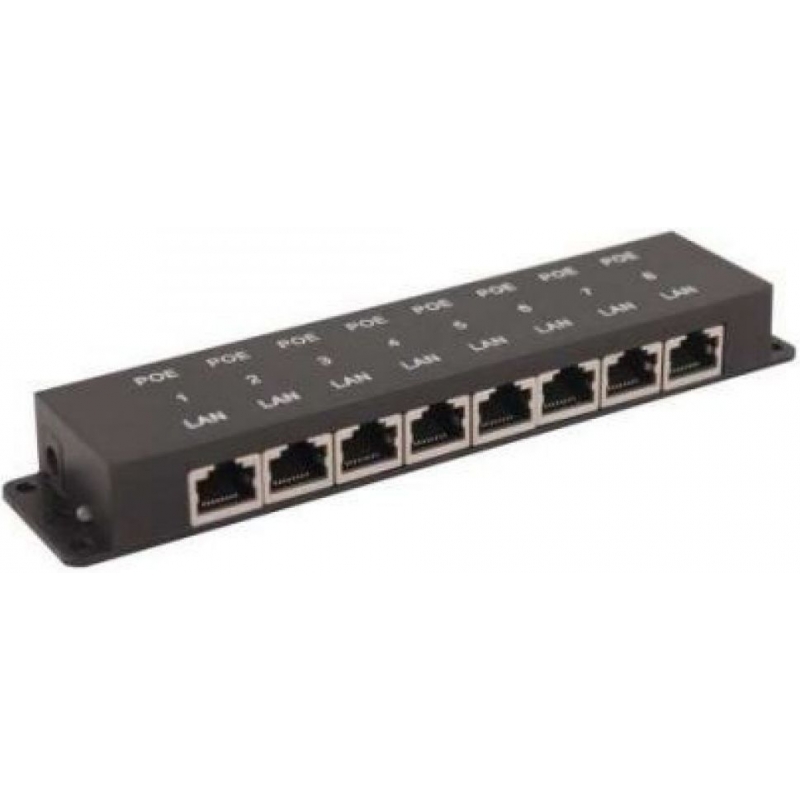 | Описание | Пассивный PoE-инжектор Fast Ethernet на 8 портов. Предназначен для питания оконечных сетевых устройств. Напряжение PoE - до 57V(конт. 4,5 (+), 7,8 (-)). Максимальный ток на каждый порт - 650мA. |