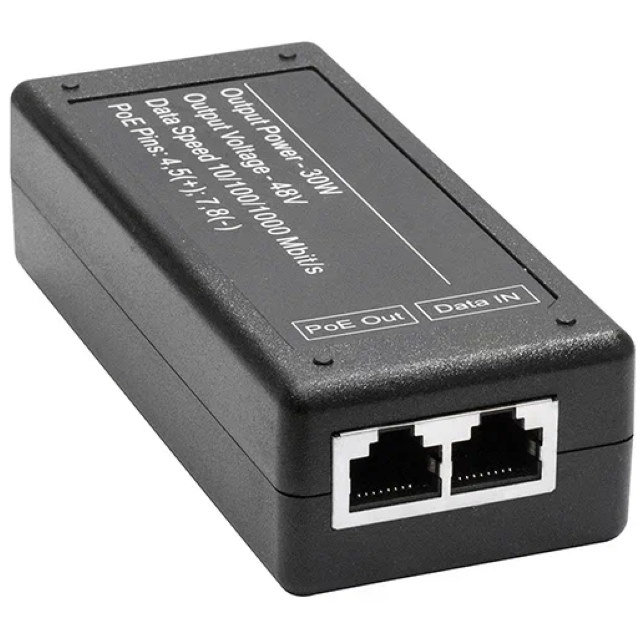 PoE-инжектор Gigabit Ethernet на 1 порт, мощностью до 30W. Совместим с оборудованием PoE IEEE 802.3af/at. Мощность PoE на порт - до 30W. Напряжение PoE - 48Vконт. 4,5 , 7,8-. Порты: вх. - 1 x RJ4510/100/1000 Base-T, вых. 1 x RJ4510/100/1000 Base-T, PoE 48V. Питание: AC100-240V. Размеры ШхВхГ: 50x30x105мм. Рабочая температура : -10... 55 гр. С.