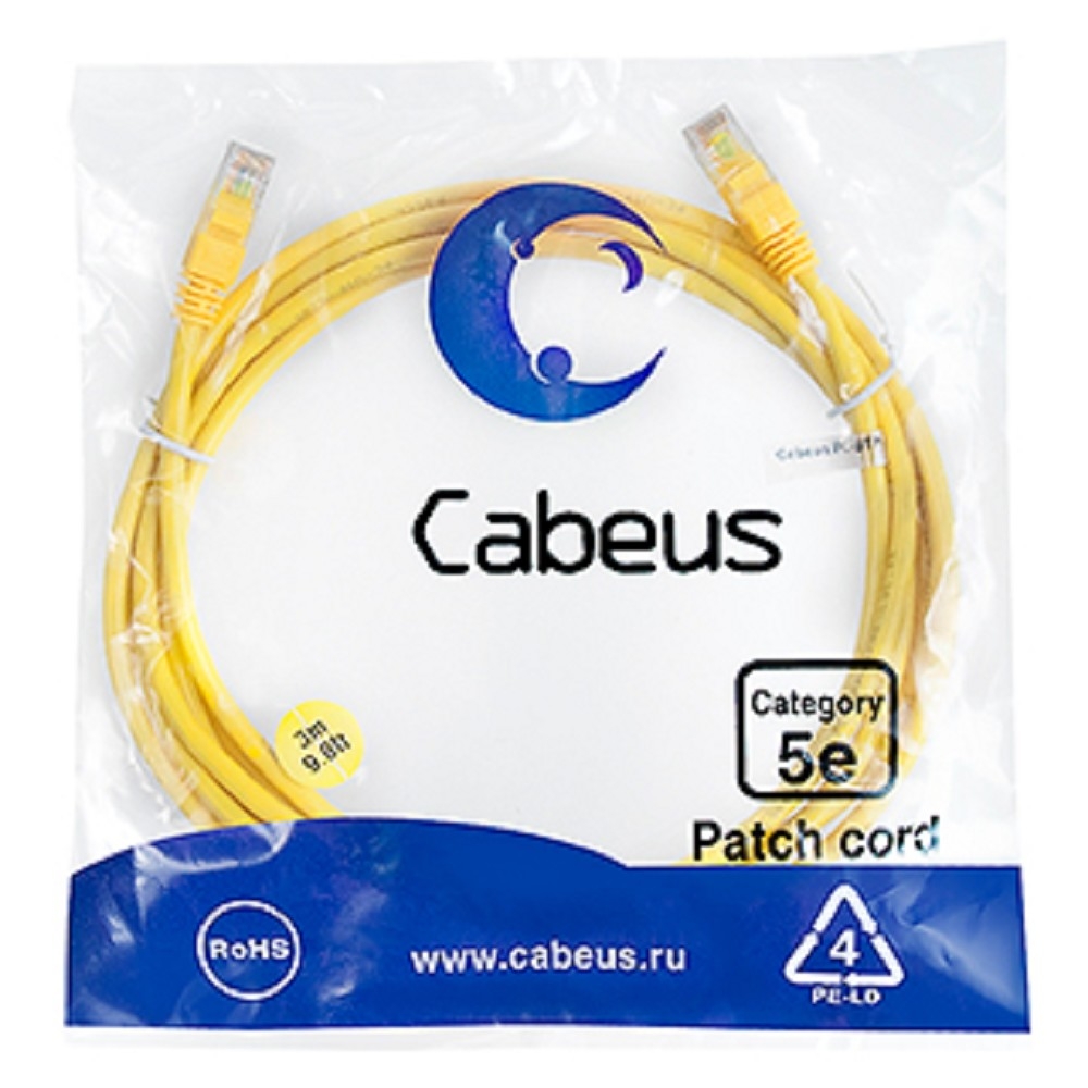 Патч-корд PC-UTP-RJ45-CAT.5E-3M-YL-LSZH от компании CABEUS |