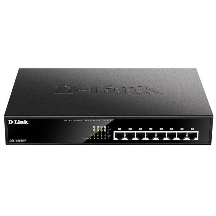Мощный коммутатор D-Link DGS-1008MP в то же самое время достаточно прост в использовании, настроить его под свои нужды сможет каждый, для этого теперь совсем не нужны технические знания и навыки. Устройство D-Link DGS-1008MP - это идеальное решение для организации бесперебойной работы у Вас в офисе.