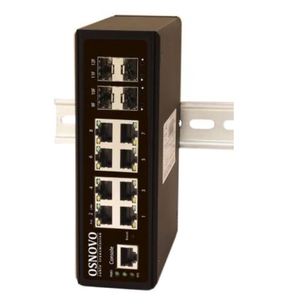 OSNOVO Промышленный гигабитный L2 коммутатор на 12 портов , 8*10/100/1000Base-T, 4*SFP 1000Base-X, БП опционально