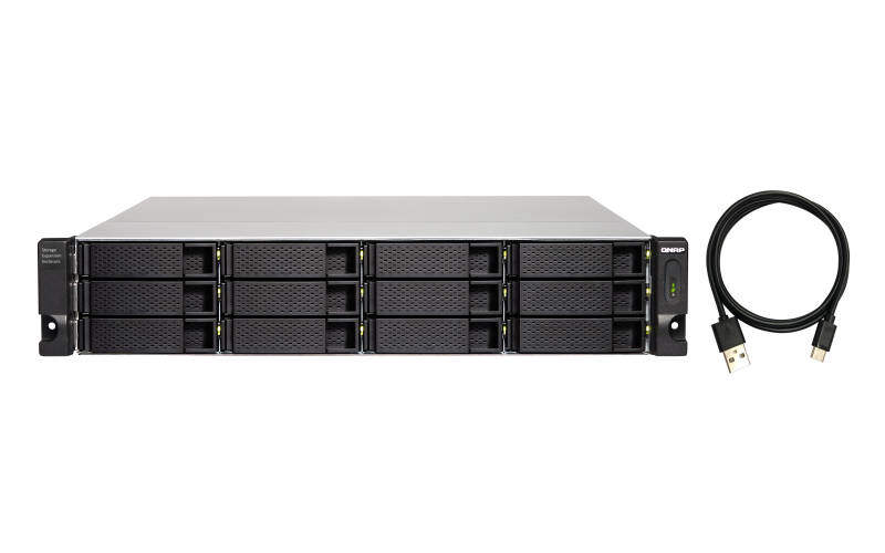 TL-R1200C-RP Сетевой RAID-накопитель QNAP TL-R1200C-RP USB 3.2 Gen 2 Type-C JBOD storage enclosure, 12-tray 3,5"/2,5" без HDD, 2xPSU. Для монтажа в стойку. Без комплекта направляющих RAIL-B02